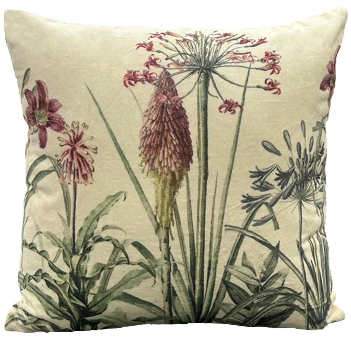 Refresh your space with this charming botanical cushion cover featuring vintage-style garden florals in muted natural tones. The soft velvet base adds depth and coziness, while the detailed print brings a serene, nature-loving aesthetic to your interior. Whether used in a living room, bedroom, or reading nook, it effortlessly blends with earthy, floral, or classic décor.