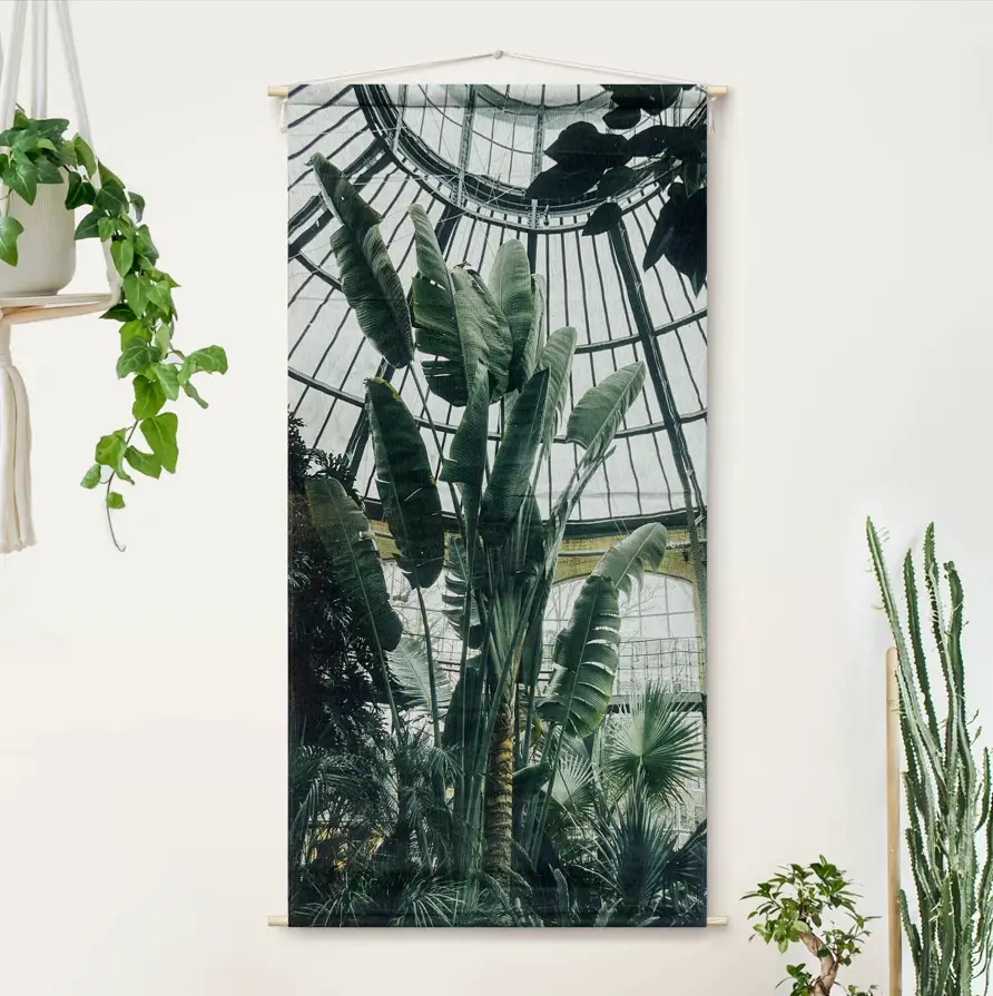 Bring nature indoors with this stunning botanical wall hanging featuring a lush tropical green -house print. perfect for adding freshness and depth to your living spaces.
