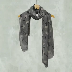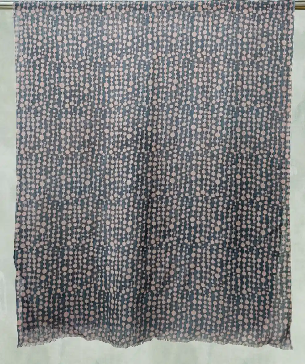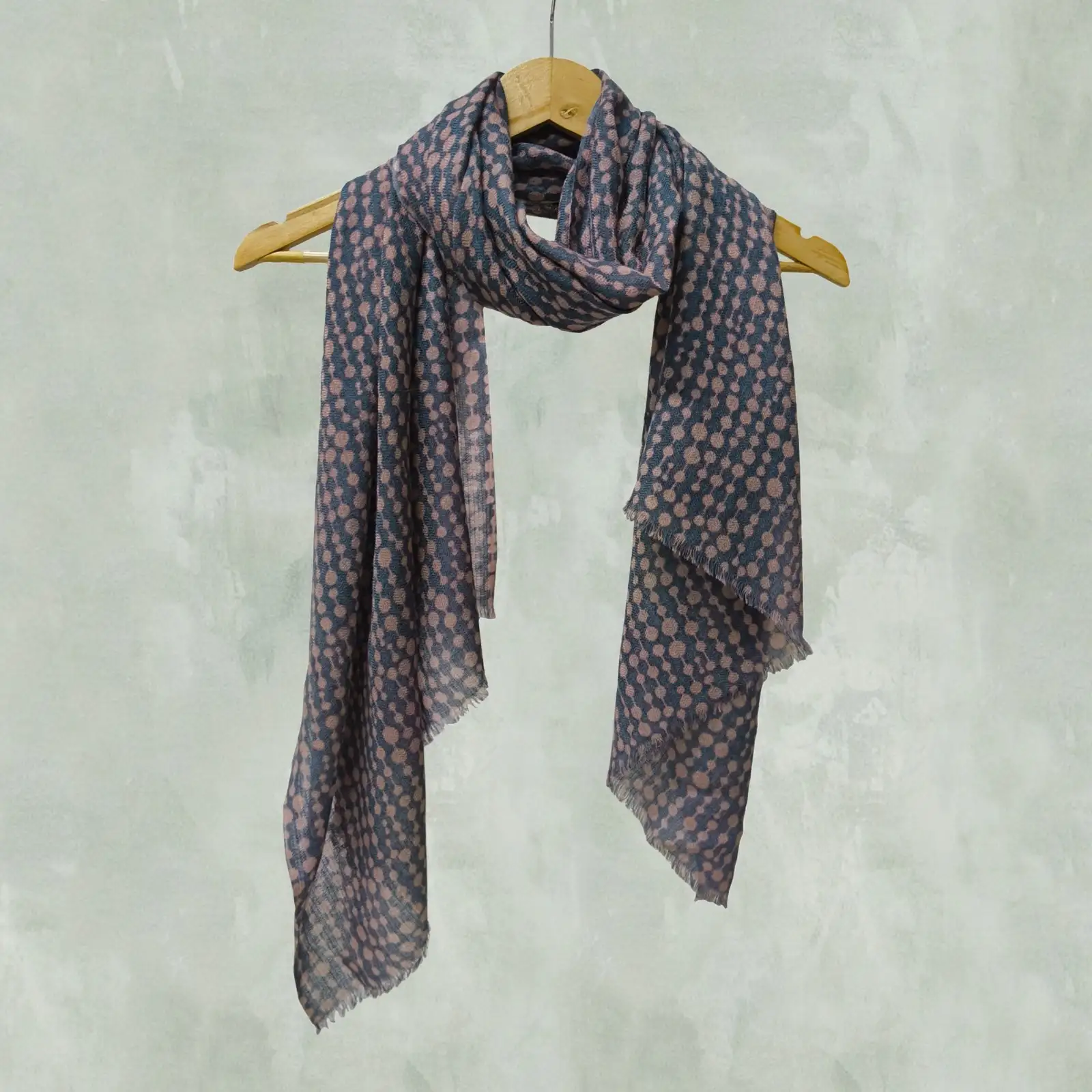 A cozy and soft scarf featuring elegant Coral Polka Dot patterns on a grey base, giving you a stylish and warm look.