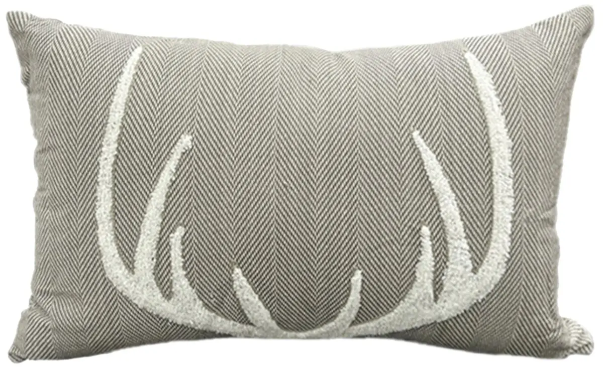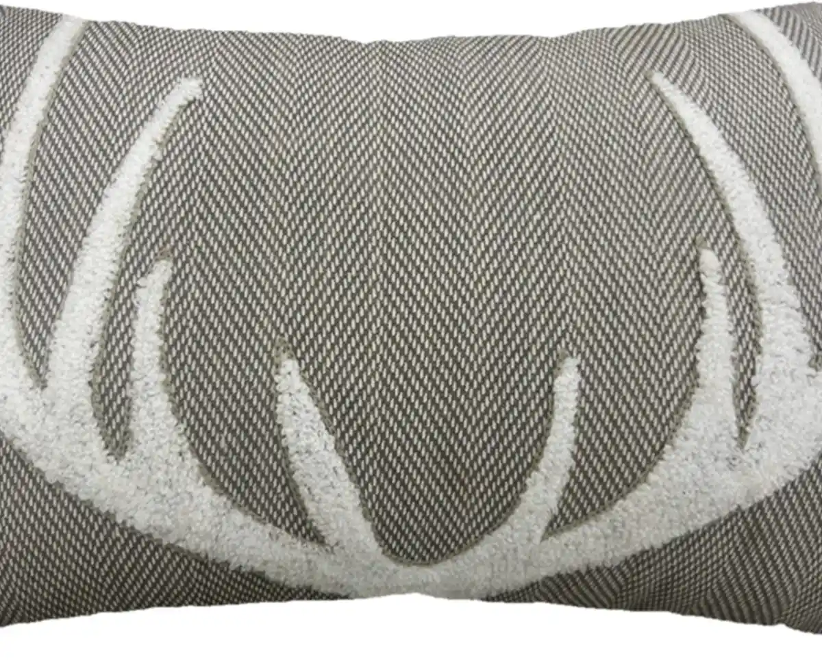 Decorative White Antler Embroidery Grey Cushion W/ Filler: Set of 2 (12 x 20 Inch), Rustic Winter Lodge Style