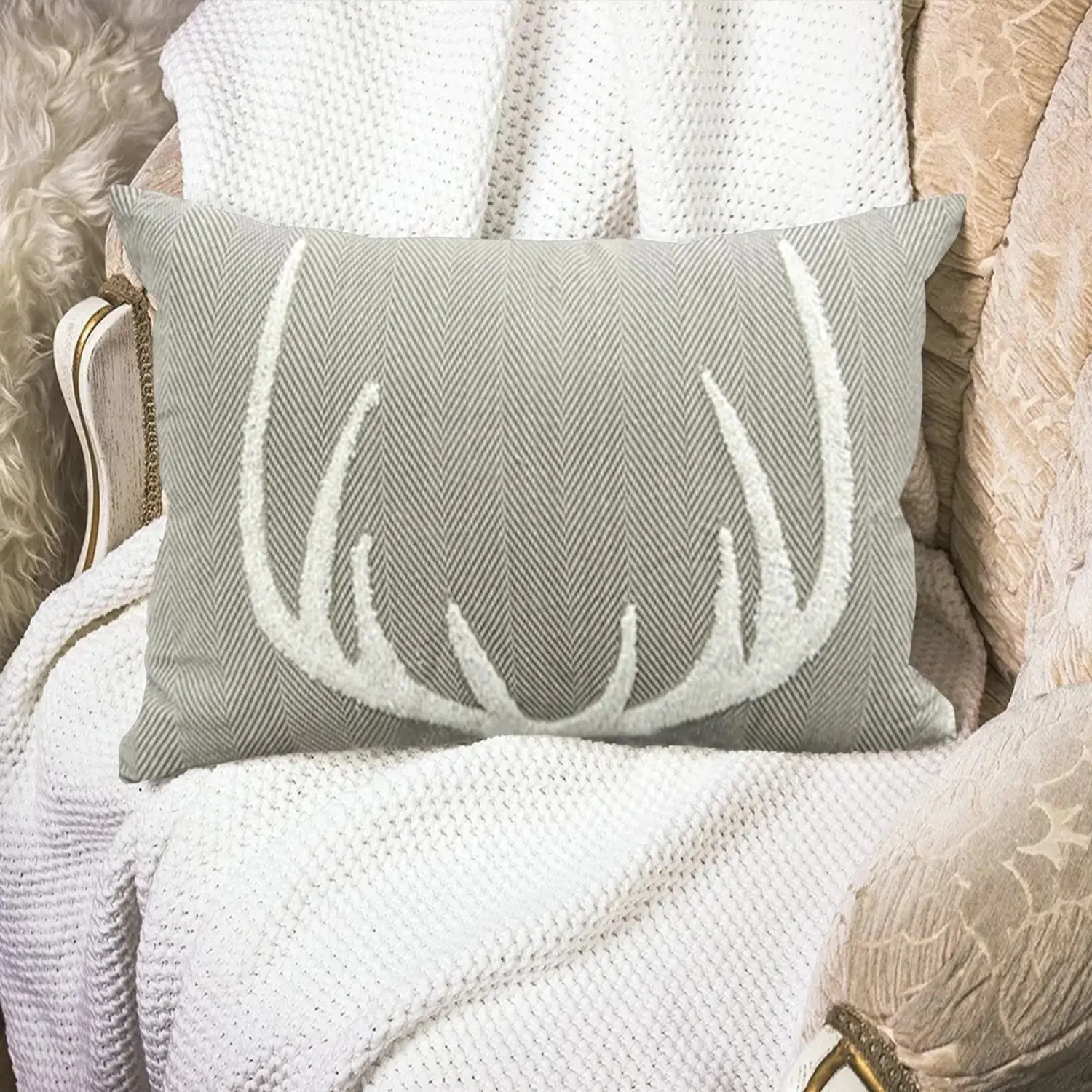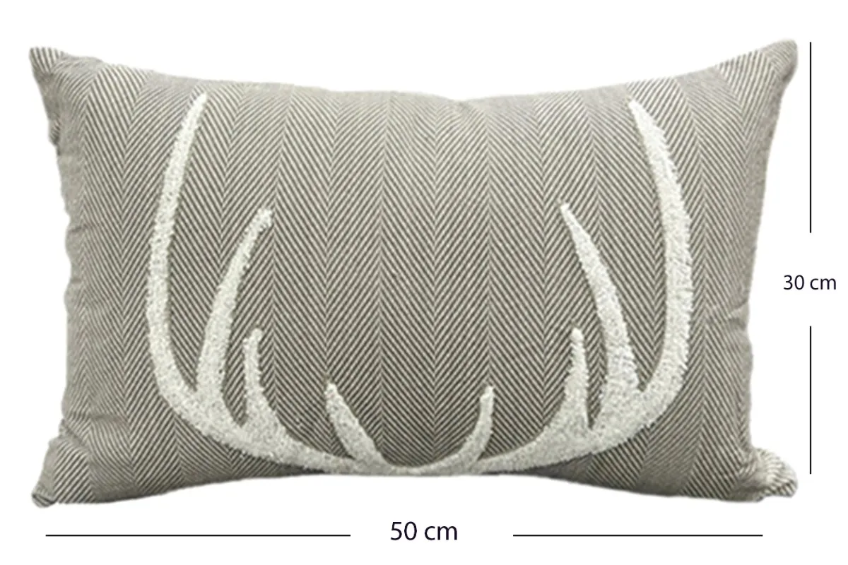 Bring a cozy cabin vibe to your home with this embroidered antler cushion cover. Its rustic charm and neutral tones make it perfect for both modern and woodland-inspired décor.