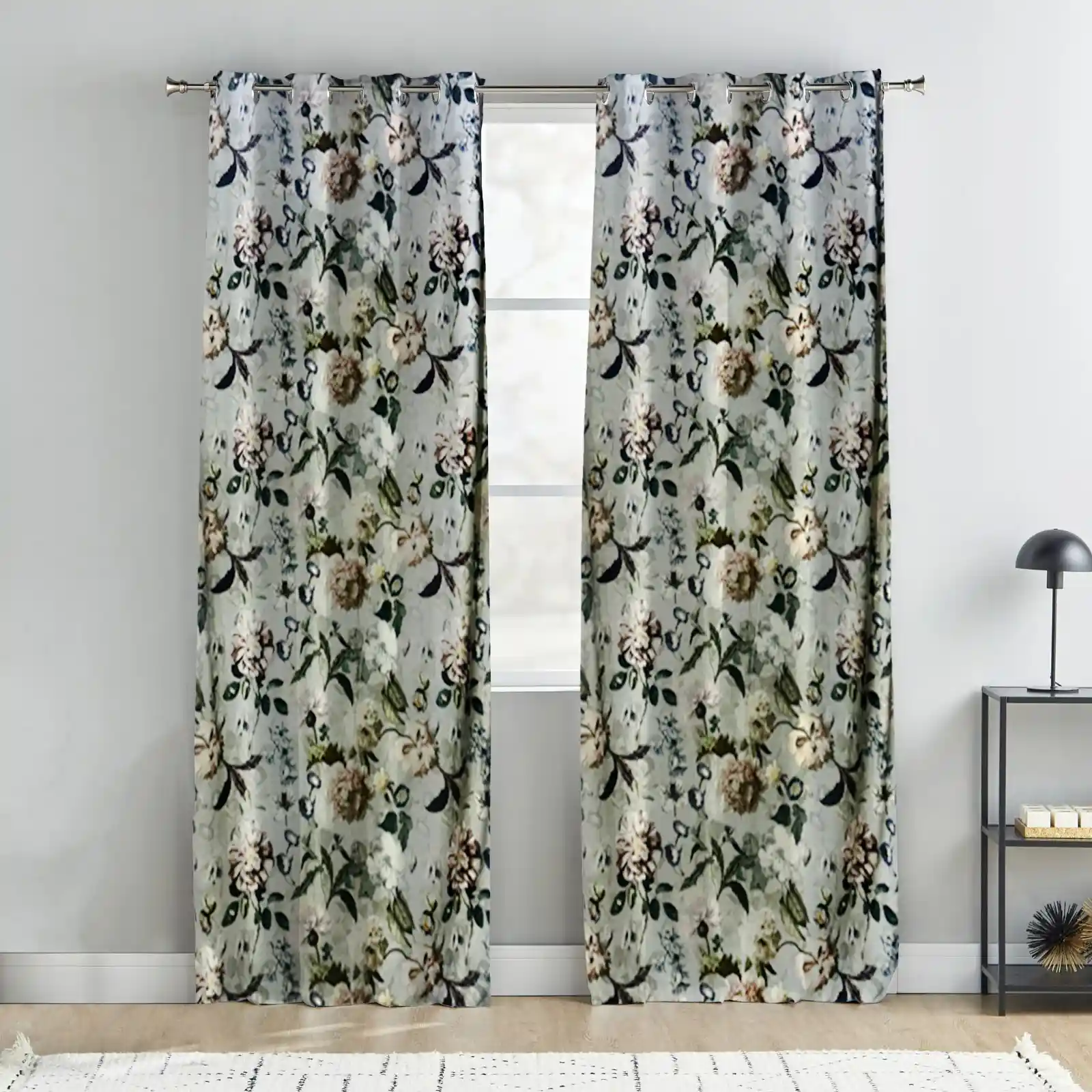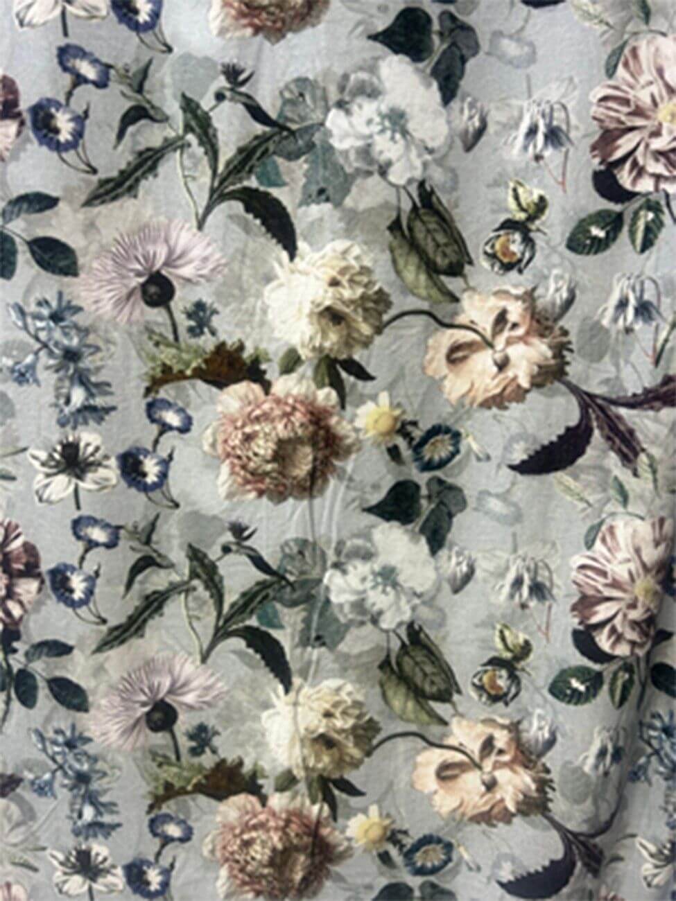 A soothing pastel grey base with elegant floral patterns perfect for modern and minimal interior.