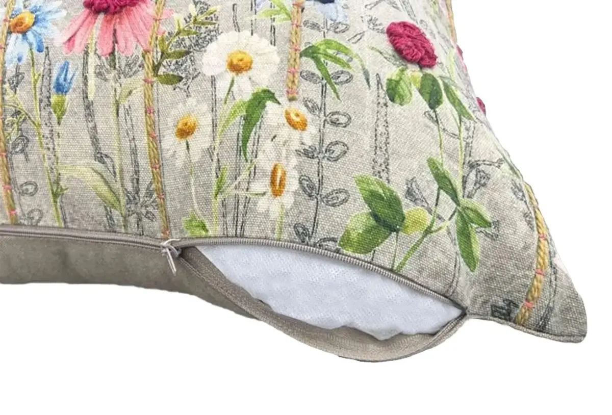 Bring nature indoors with this stunning floral cushion cover. Featuring hand-embroidered flowers on a textured cotton base, it’s the perfect touch of elegance for your living space.